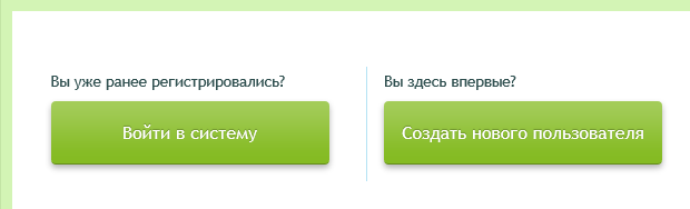 - Если Вы впервые регистрируетесь нажмите кнопку "Создать нового пользователя" для продолжения полной регистрации.
